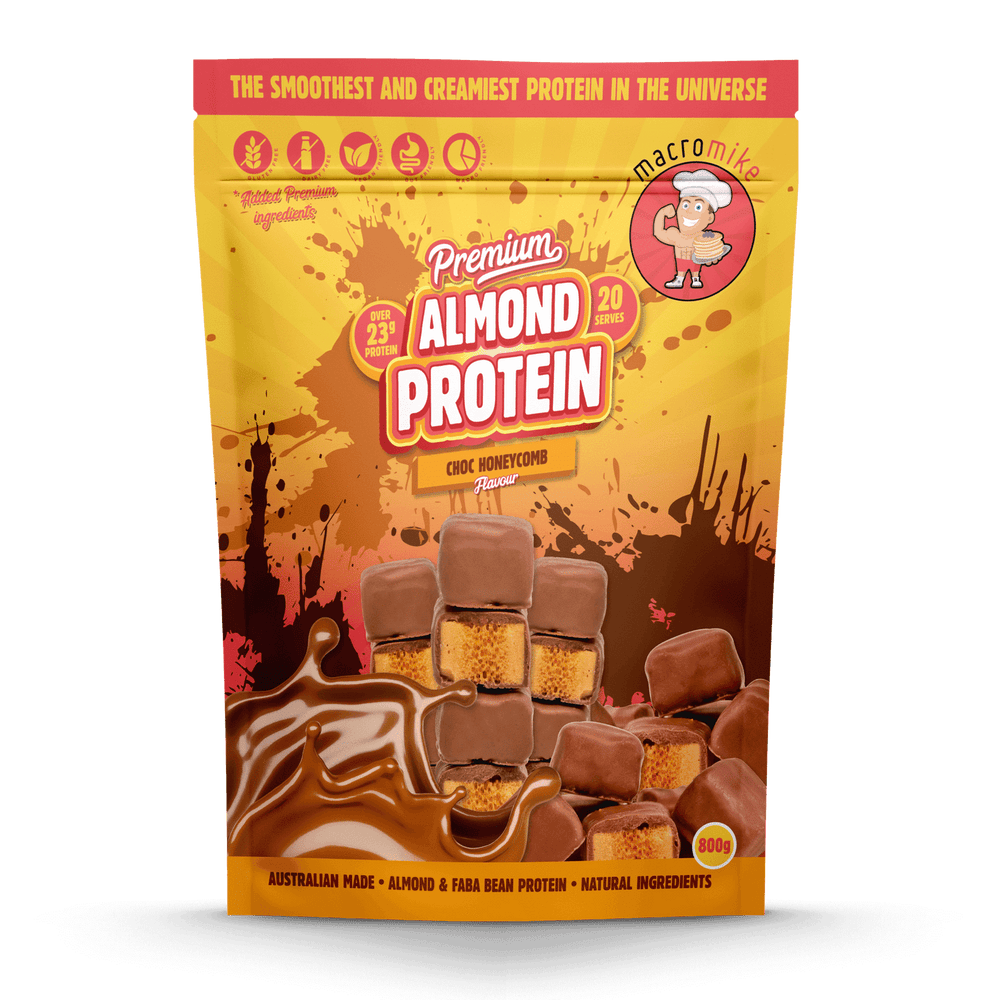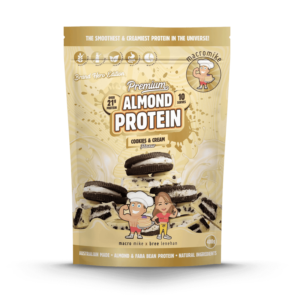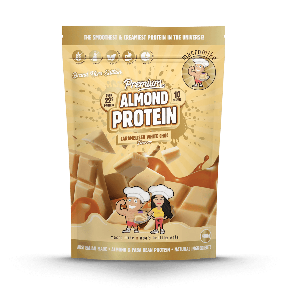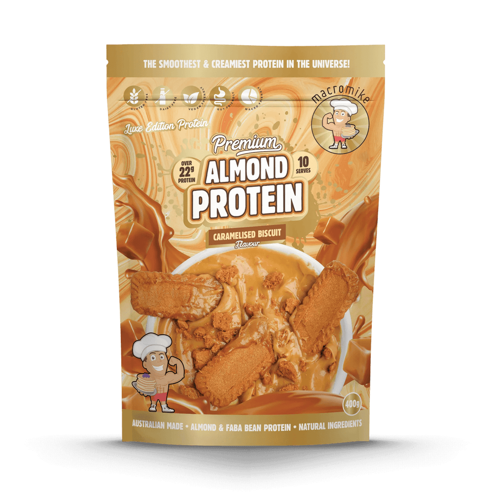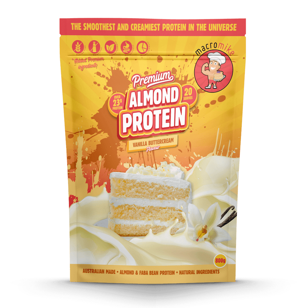 Macro Mike's 100% natural Californian Almond Protein and Australian grown Faba Bean Protein blend is silky smooth, full of fibre, vitamins, minerals and packs a huge 23g+ of plant protein. Combined with gut-loving Probiotics, B Vitamins and nothing artificial what so ever, it really is unlike anything else on the market. More so, this comprehensive blend is naturally sweetened with delicious coconut flower nectar and innovative monk fruit, which contains no carbs, no calories, does not raise blood sugar levels and is gut friendly too.