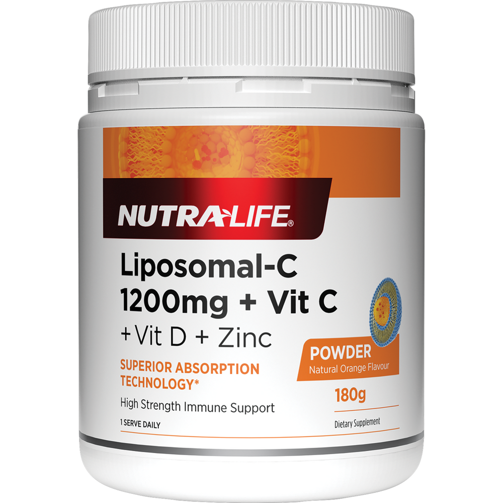 - Nutra-Life Liposomal-C 1200mg Vit C + Vit D + Zinc Powder - 180gm / Orange